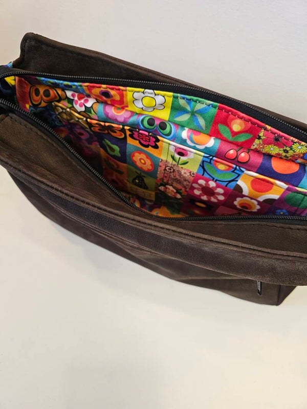 Binnnenin zit er een groot rits opbergvak en 2 kleine zakjes.